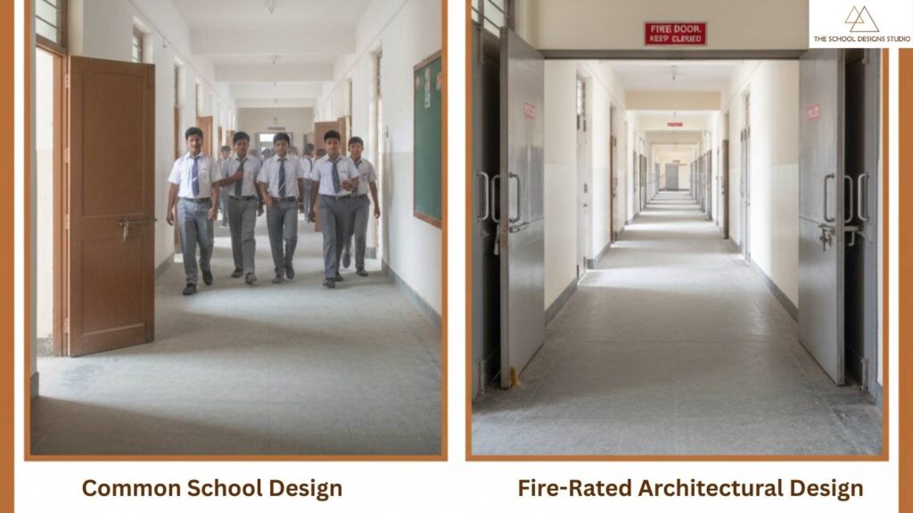 Well-designed compartmentation ensures that if a fire breaks out, children and teachers have enough time to evacuate safely without smoke filling the entire building. At The School Designs Studio, this approach is a core part of our school design philosophy, particularly for high-density K–12 campuses.