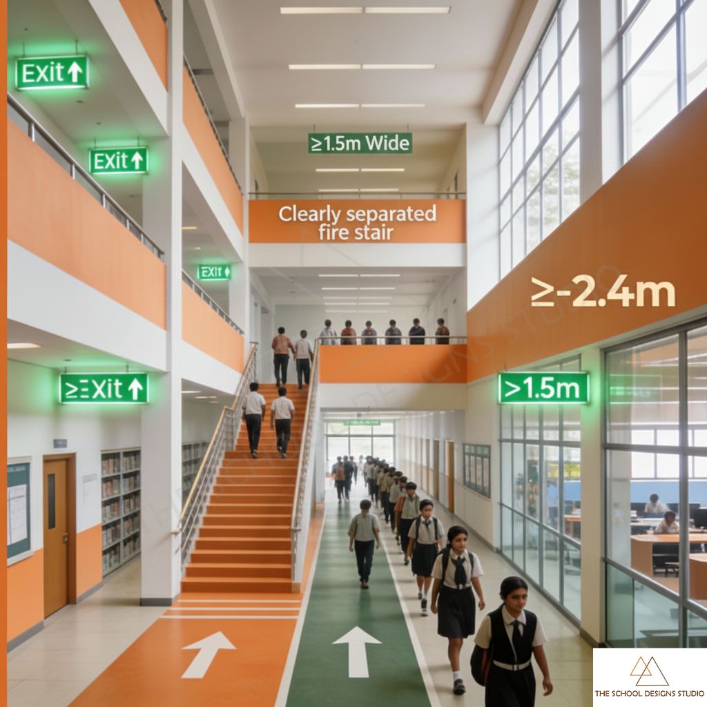 NBC 2016 is the primary legal framework governing building safety. For schools, it mandates: